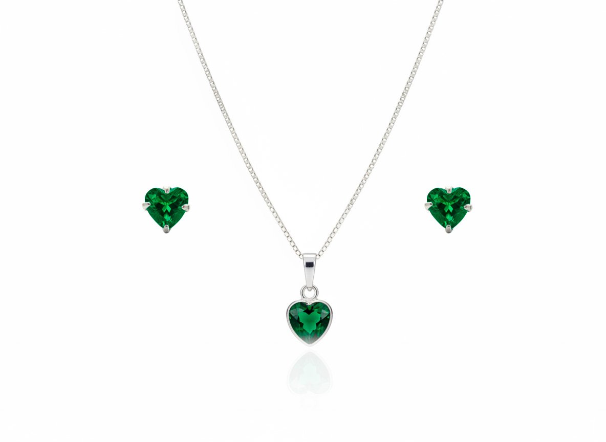 CONJUNTO ZIRCÔNIA CORAÇÃO 6MM – ESMERALDA